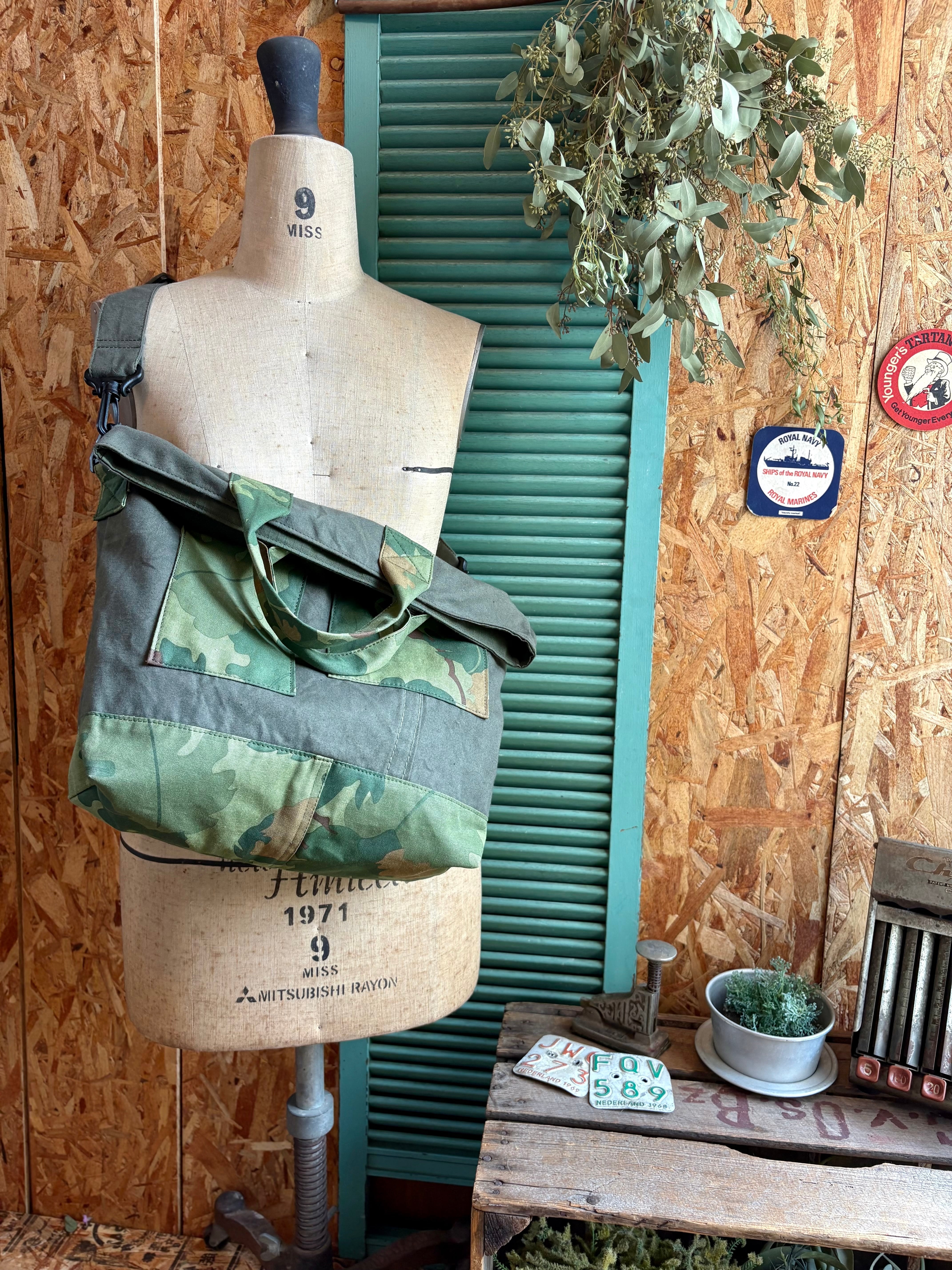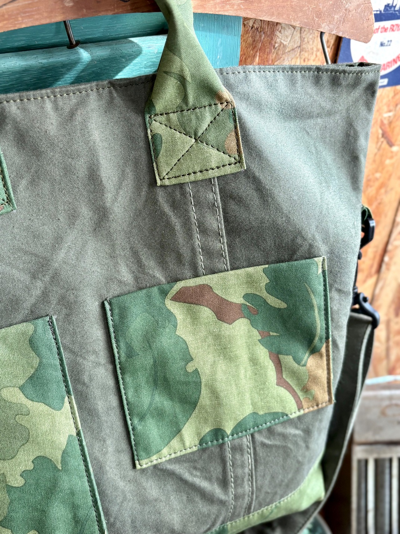 ポケットとハンドルにアメリカ軍の軍幕を組み合わせてあります。
