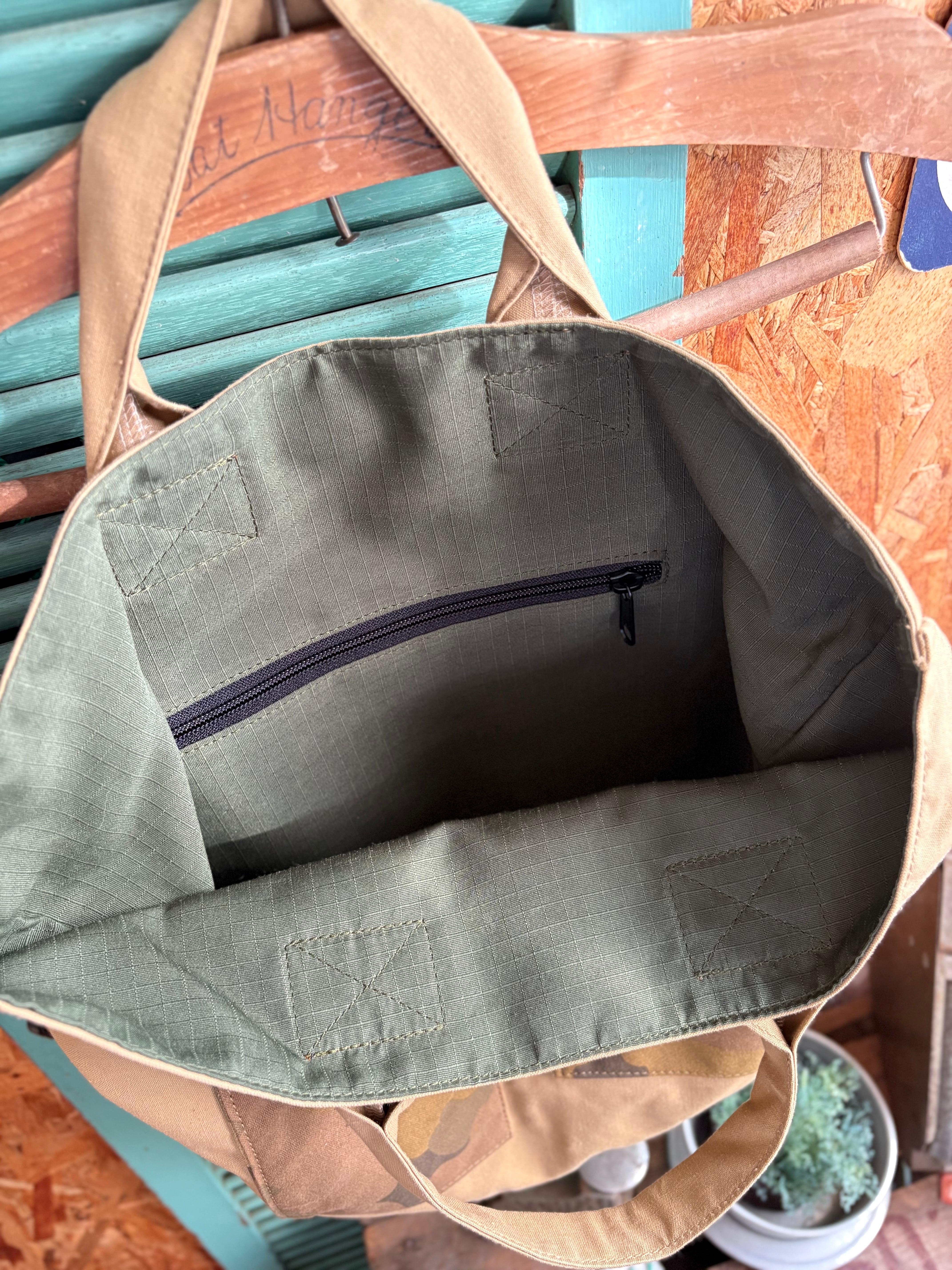 ポケットとハンドルにアメリカ軍の軍幕を組み合わせてあります。