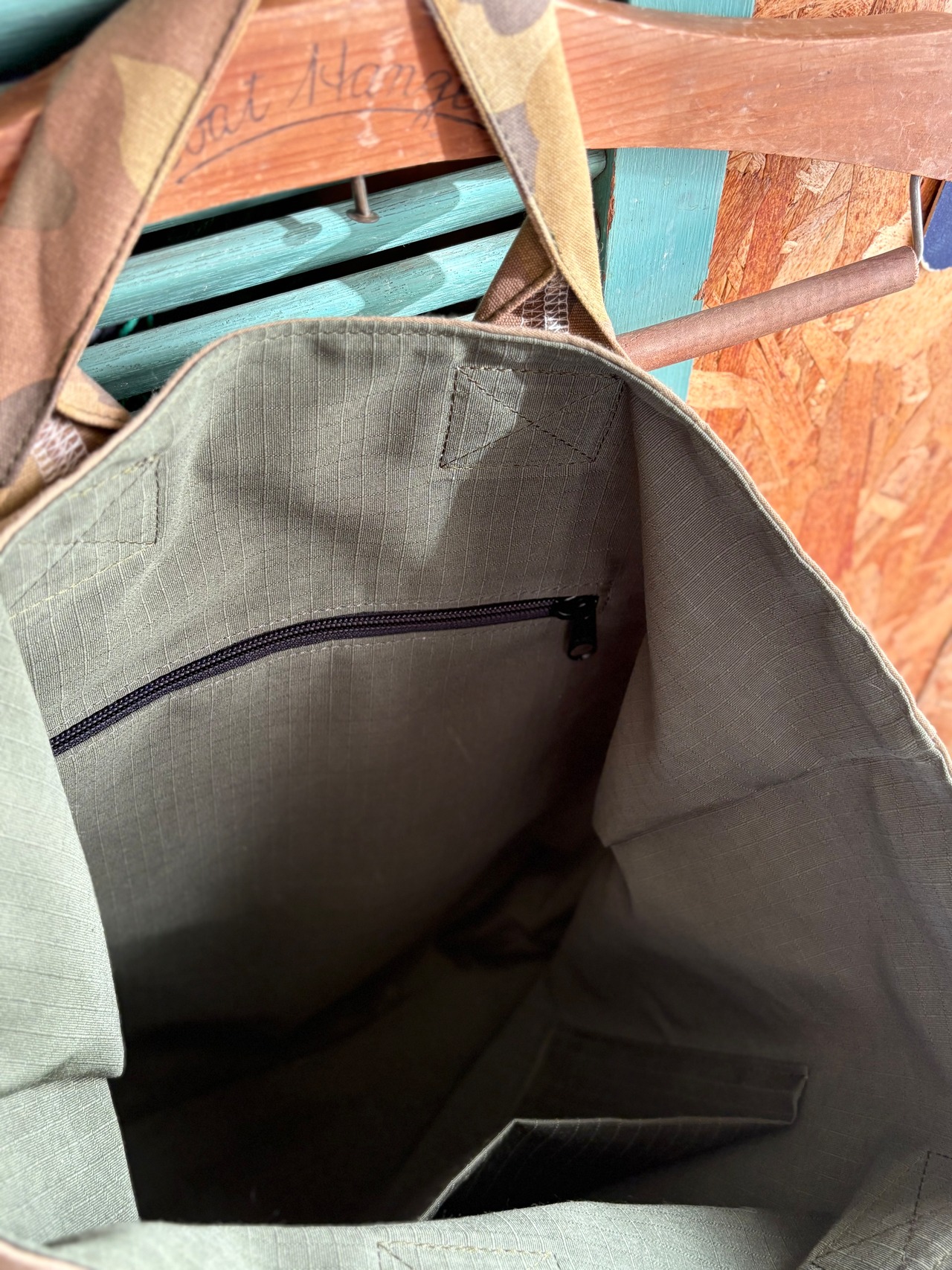 中にはファスナー付きのポケットと、平ポケットを付けました。
