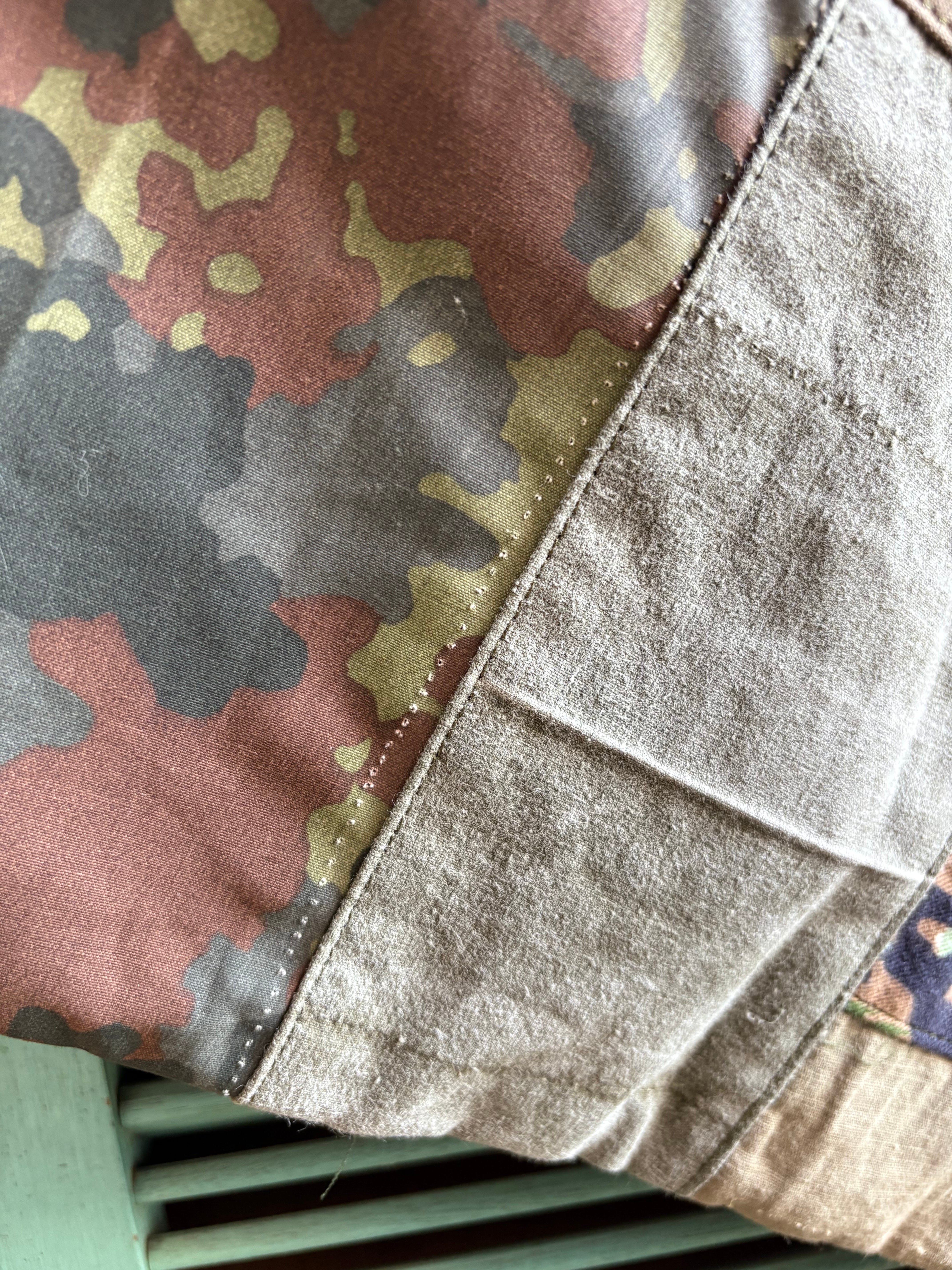 縫い目の跡が残っていますが、ユーズドのリメイク商品である事の味として
