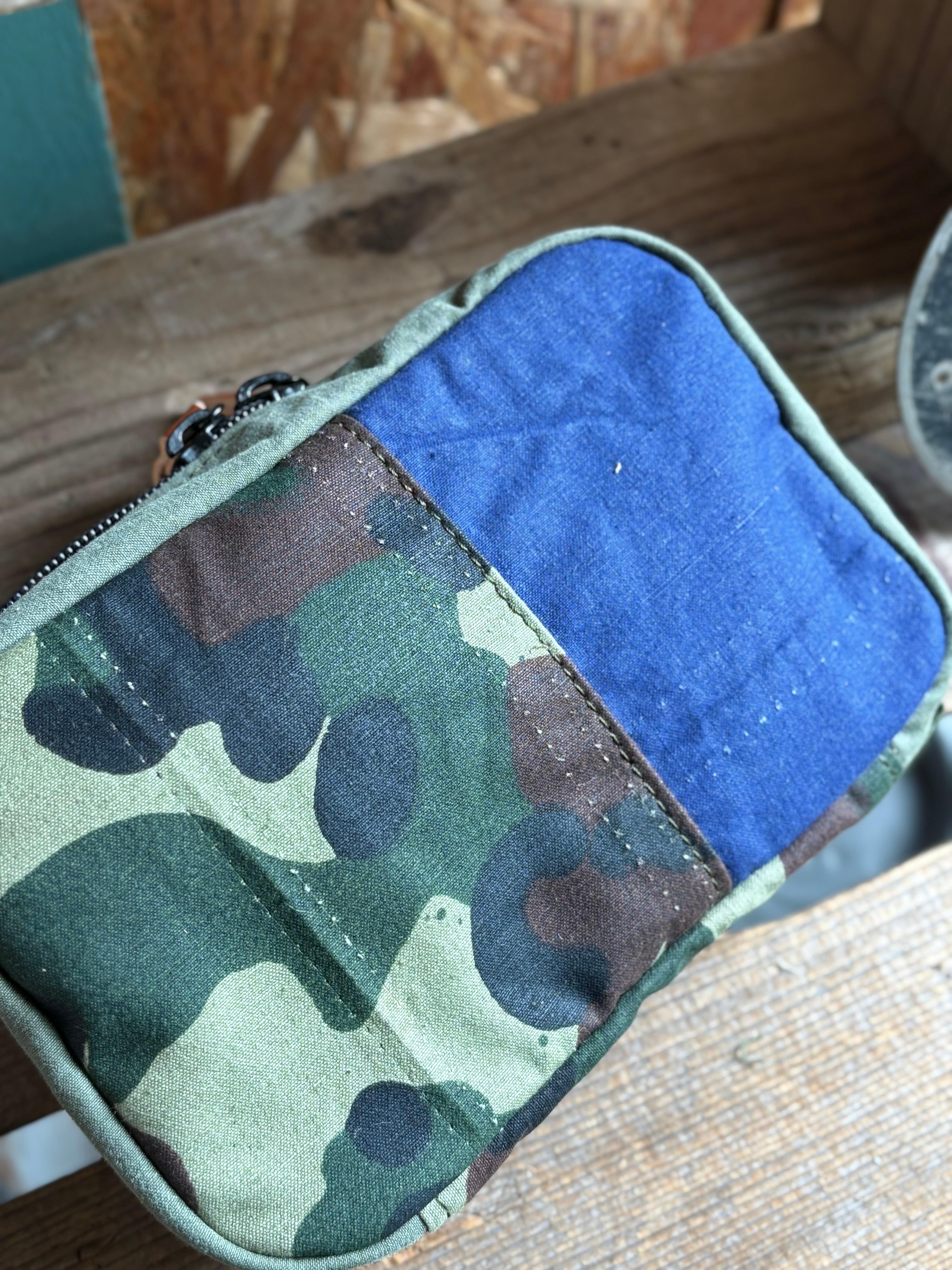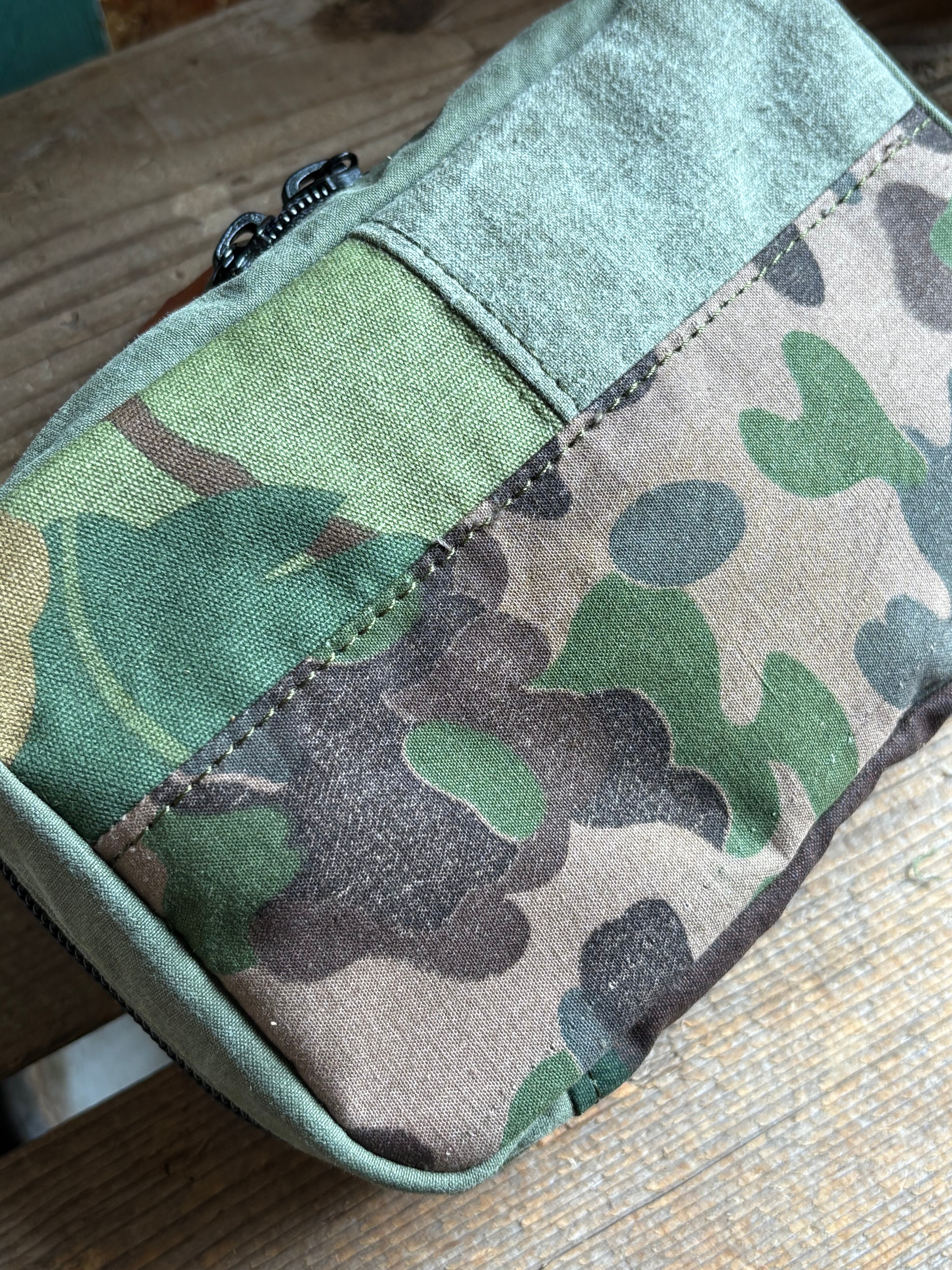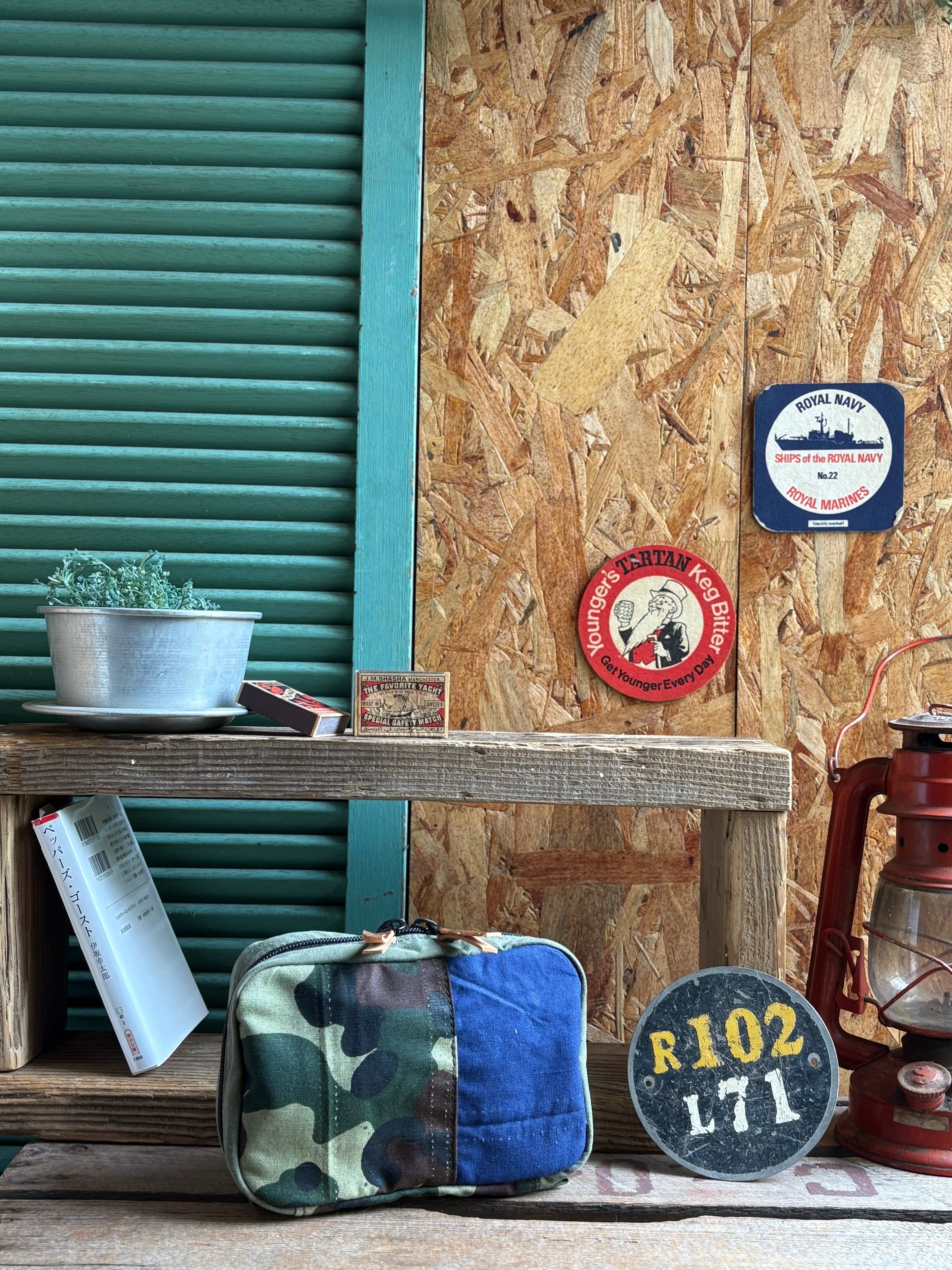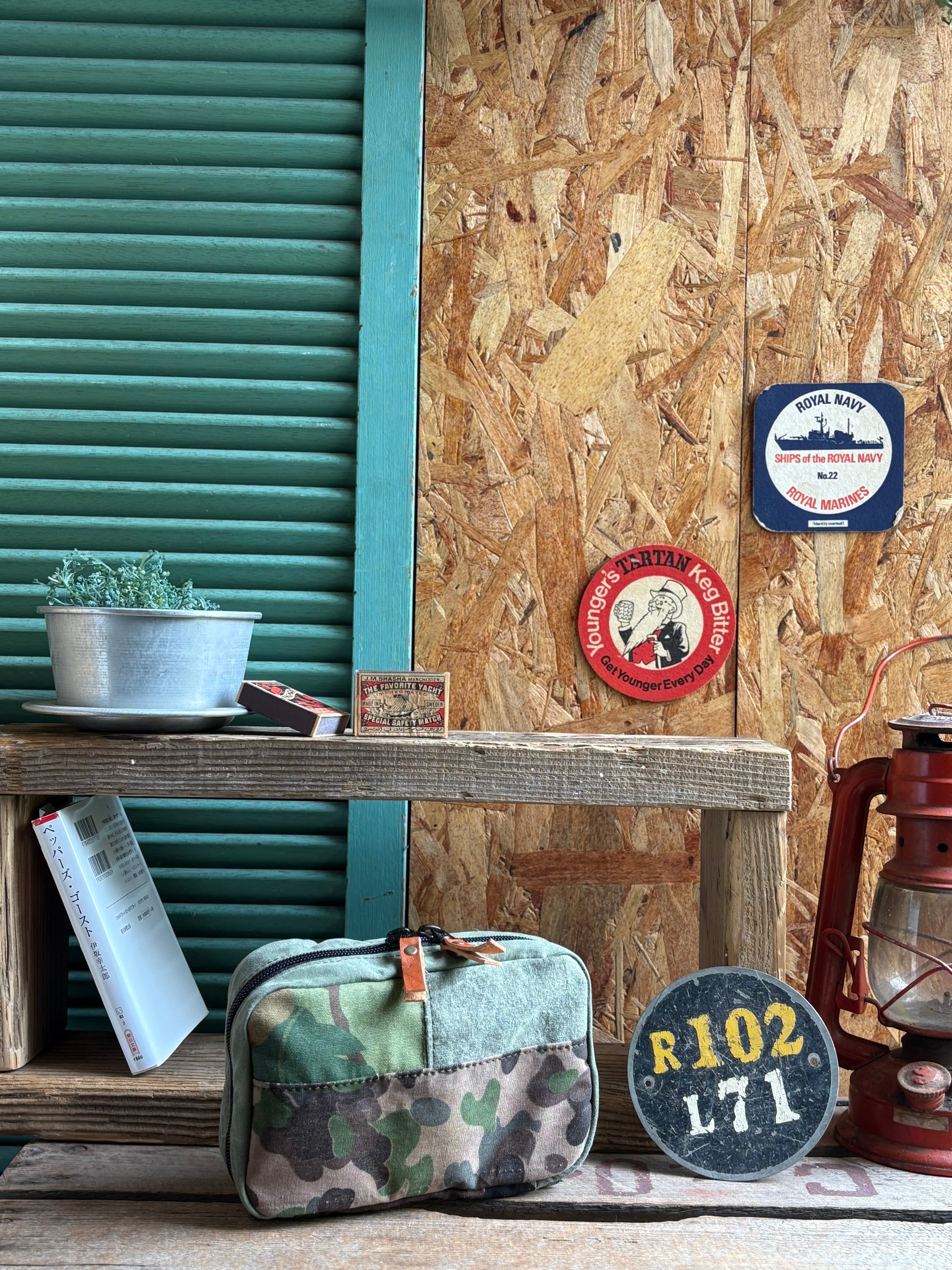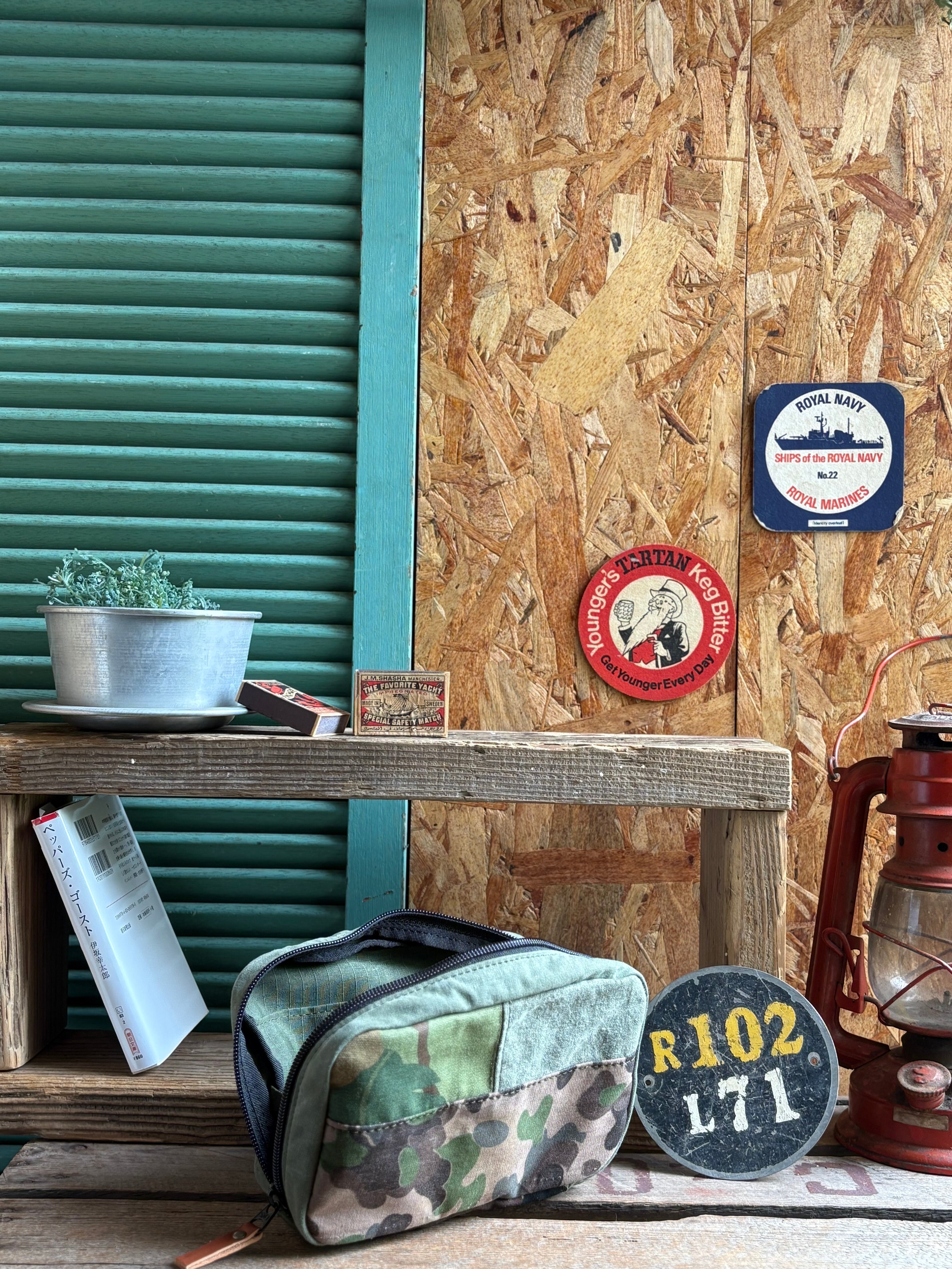 ミリタリーテントのディテールを生かしたオンリーワンのデザインとなっており、ボタンホールやハトメ、テントの耳をそのままに使っている為、ほつれや破れが入る場合があります。