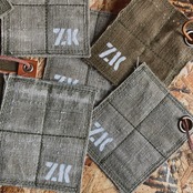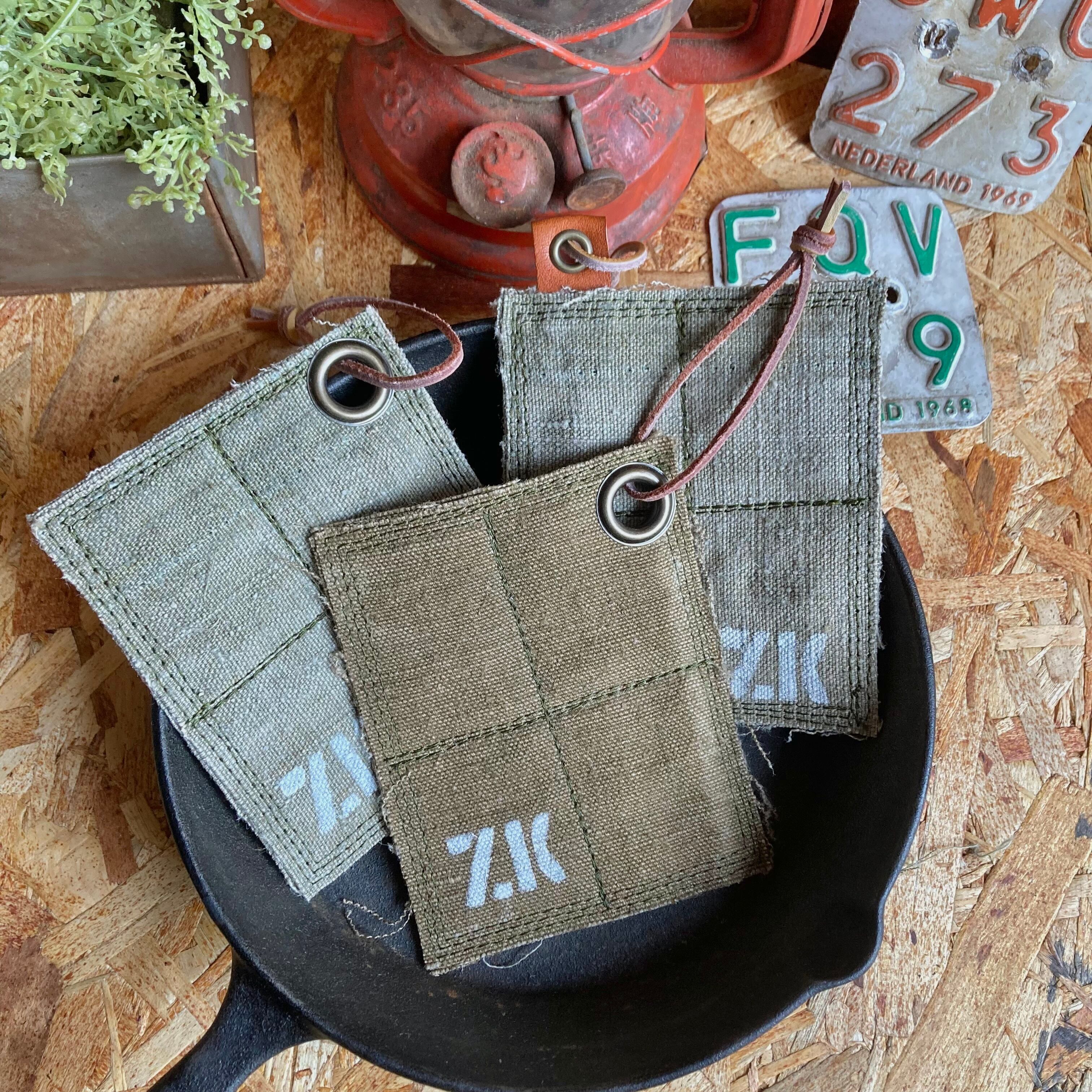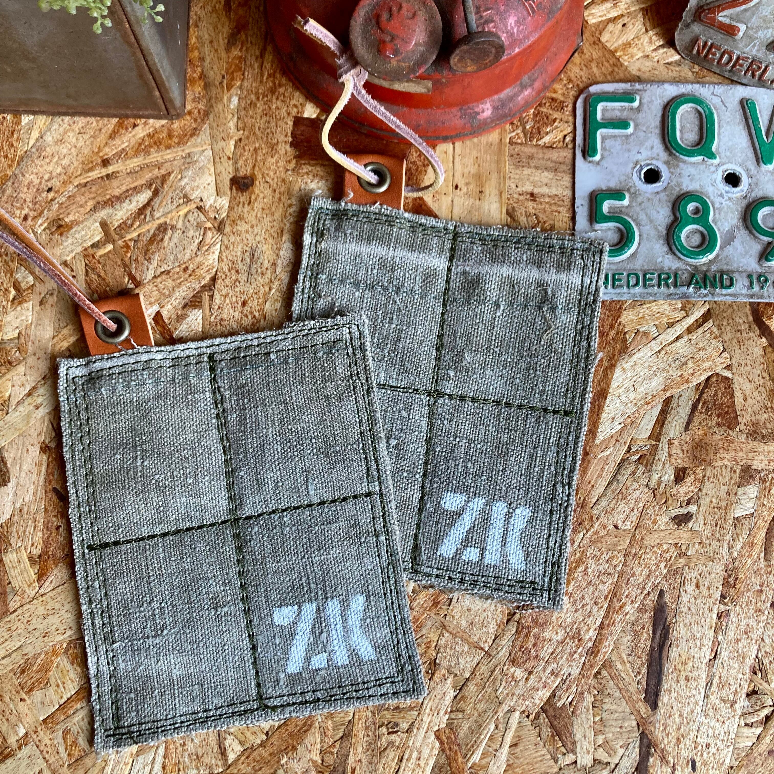 ラフなステッチで縫いまとめ、ミリタリーらしいディテールを生かした無骨なコースターが出来上がりました。