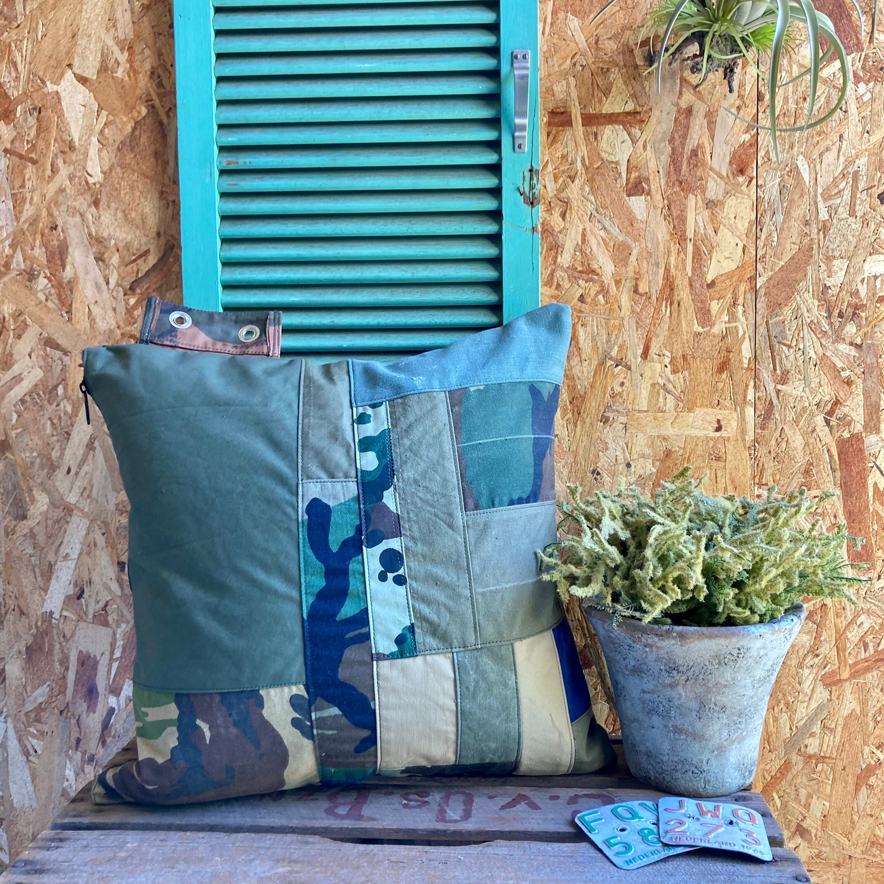 ミリタリーテントのディテールを生かしたオンリーワンのデザインとなっており、ボタンホールやハトメ、テントの耳をそのままに使っている為、ほつれや破れが入る場合があります。